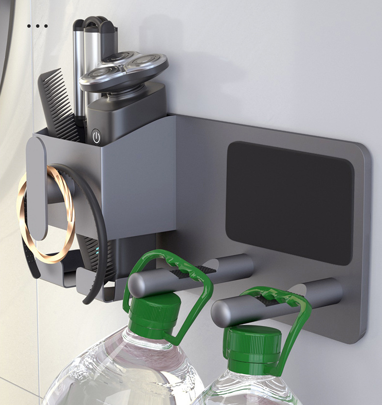 Chúng ta có thể để máy cạo râu, bàn chải đánh răng điện, có ổ cắm sạc ở phía dưới, tiết kiệm diện tích để máy cạo râu, giá để đồ điện, móc treo máy uốn tóc.