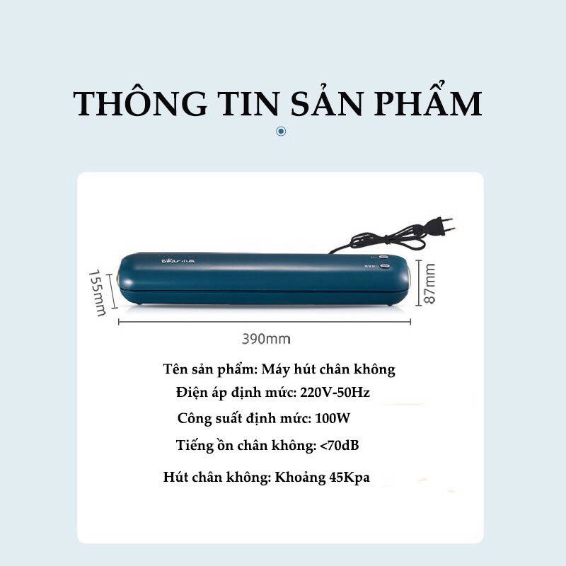 - Máy Hút Chân Không Bear FKJ-C01E1 với thiết kế nhỏ gọn, vận hành đơn giản chỉ bằng 1 nút bấm