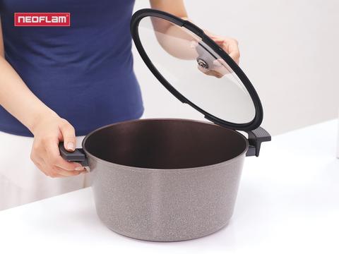 | Chất liệu | Sản phẩm bằng nhôm tinh khiết phủ gốm chống dính Daikin ES thế hệ mới của Nhật Bản, tay cầm nhựa ABS chịu nhiệt, va đập. Nắp vung bằng kính cường lực viền silicone đen, chịu được nhiệt độ cao, an toàn vệ sinh thực phẩm, |