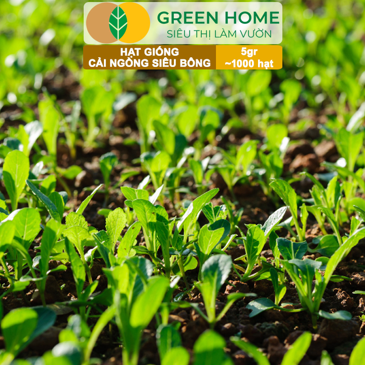 Hạt Giống Cải Ngồng Siêu Bông Huge GreenHome, Gói 5gr~1000 hạt, Dễ Trồng Quanh Năm, Thân Mập R25