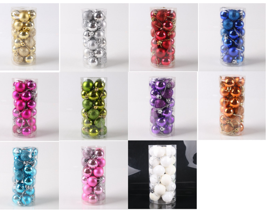 ** Kích thước: đường kính 1 quả 6cm, 1 bộ 24 quả châu (gồm 3 kiểu trơn, kim tuyến, mờ trộn lẫn)