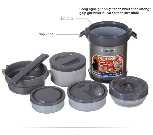 Giới thiệu Hộp cơm giữ nhiệt 4 ngăn Zojirushi SL-JAF14-HG 1,27L, hàng chính hãng
