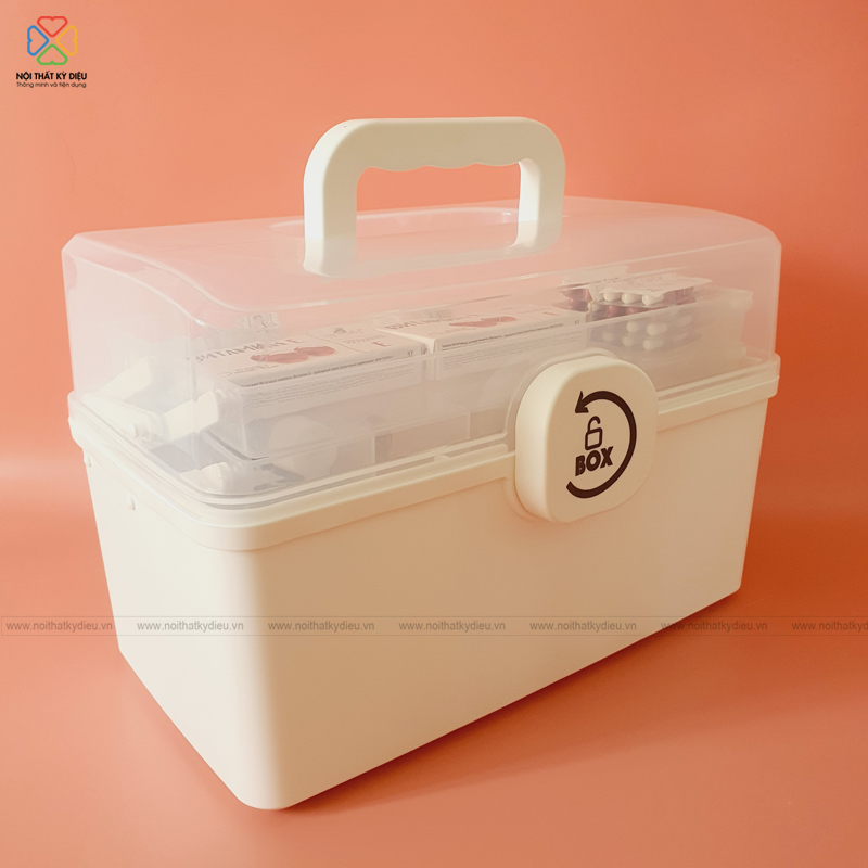 | Hướng dẫn sử dụng | TÍNH ỨNG DỤNG:Hộp đựng thuốc gia đình- Hộp y tế đa năngCông năng sản phẩm hộp thuốc gia đình:– Đựng thuốc trong gia đình– Để trong phòng ngủ hoặc ngoài phòng kháchĐặc tính sản phẩm hộp thuốc gia đình thông minh:– Sử dụng chất liệu nhựa PP, thân thiện với môi trường, sức khoẻ, dày, bền, đẹp.– Thiết kế 3 tầng giúp:+ Góc mở 180 độ dễ dàng lấy thuốc ở các tầng+ Phân loại các loại thuốc theo các tầng, tìm thuốc dễ dàng khi có nhu cầu.+ Tránh hỏng thuốc+ Trẻ em không ăn nhầm thuốc– Khoá hộp thiết kế dạng xoay, dễ dàng đóng mở.– Có tay xách, dễ dàng cầm di chuyển trong các khu vực trong nhà. |