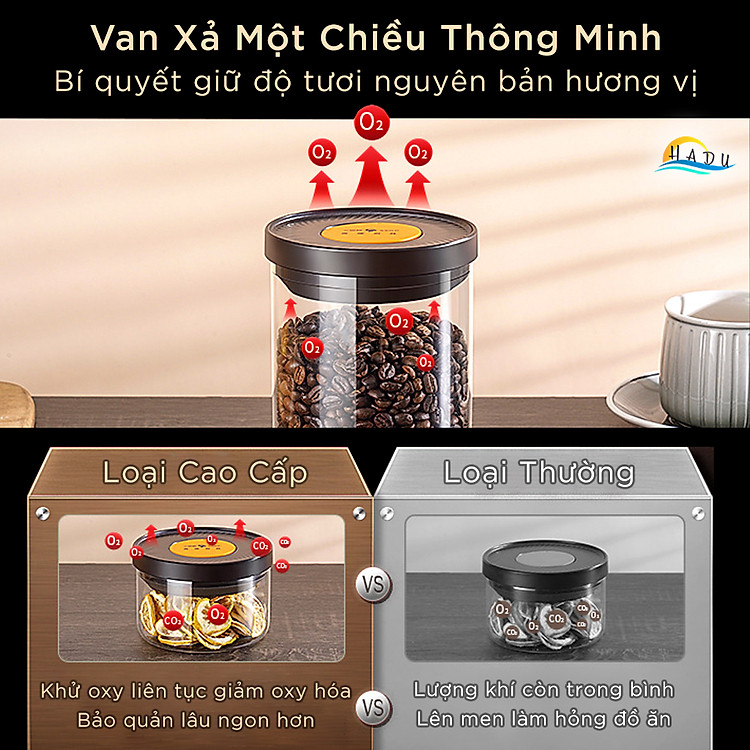 - Van xả 1 chiều khử oxy liên tục giảm quá trình oxy hóa bảo quản đồ ăn lâu hơn giữ nguyên hương vị.