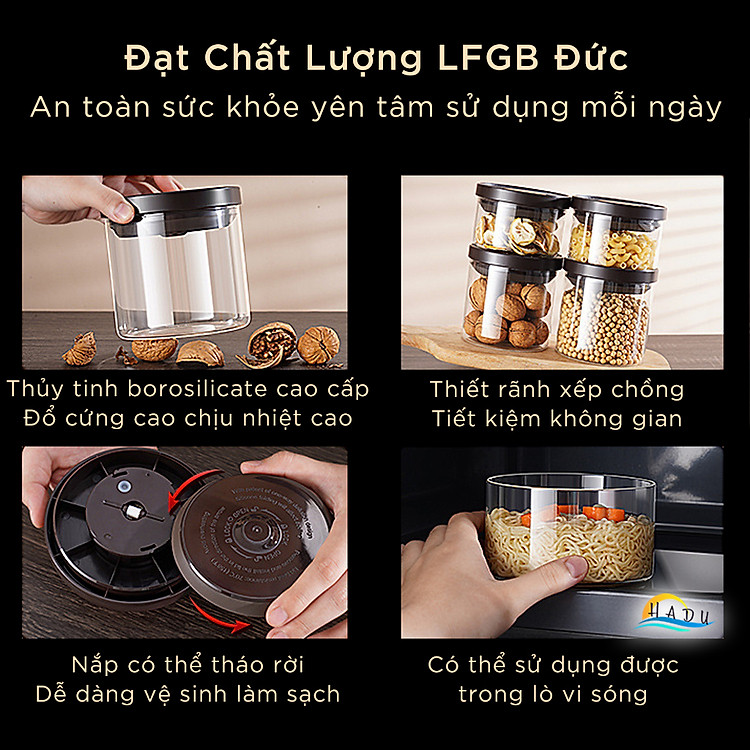 Hộp Hũ Đựng Trà Cafe Đồ Khô Và Ngũ Cốc Thủy Tinh Có Nắp Cao Cấp Đạt Chất Lượng LFGB Đức SSGP