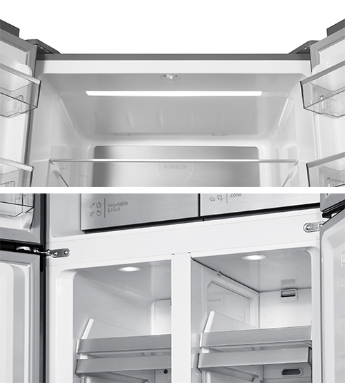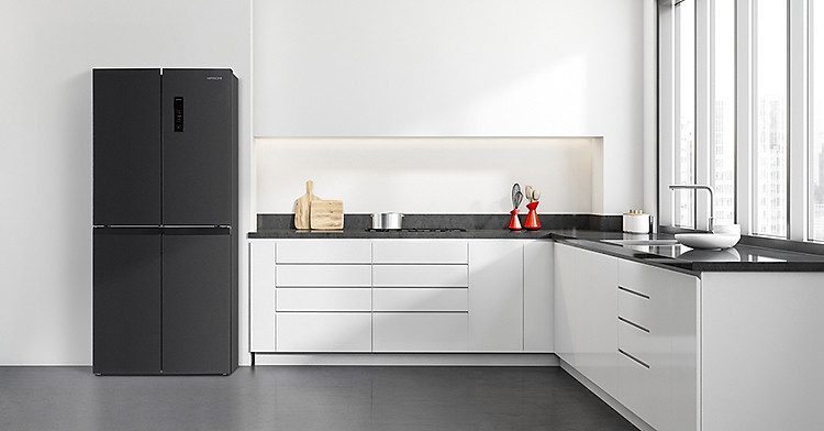 Thiết kế tiện lợi đáp ứng mọi nhu cầu của cuộc sống hiện đại, kết hợp cùng đường nét tinh tế, sang trọng. Tủ có 4 cánh với ngăn đá dưới rất thuận tiện trong quá trình sử dụng. Chất liệu cửa tủ là inox sẫm màu.