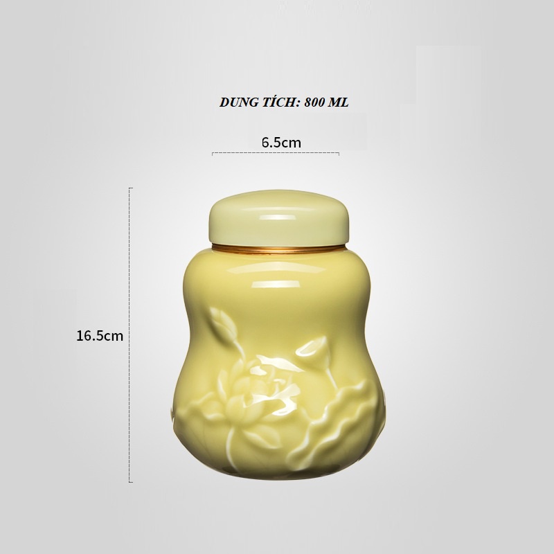 Hũ đựng trà Men Ngọc nắp đồng 02 lớp vặn ren siêu khít 800 ml