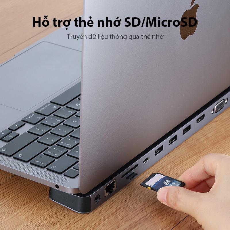 HUB Chuyển Đổi Type-C Bộ chia cổng USB & Đọc thẻ nhớ Chính Hãng VIVAN AHT900 11 in 1 Cổng USB 3.0 Dành Cho Laptop Bảo Hành Chính Hãng 12 Tháng