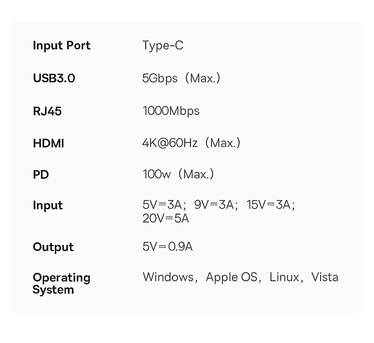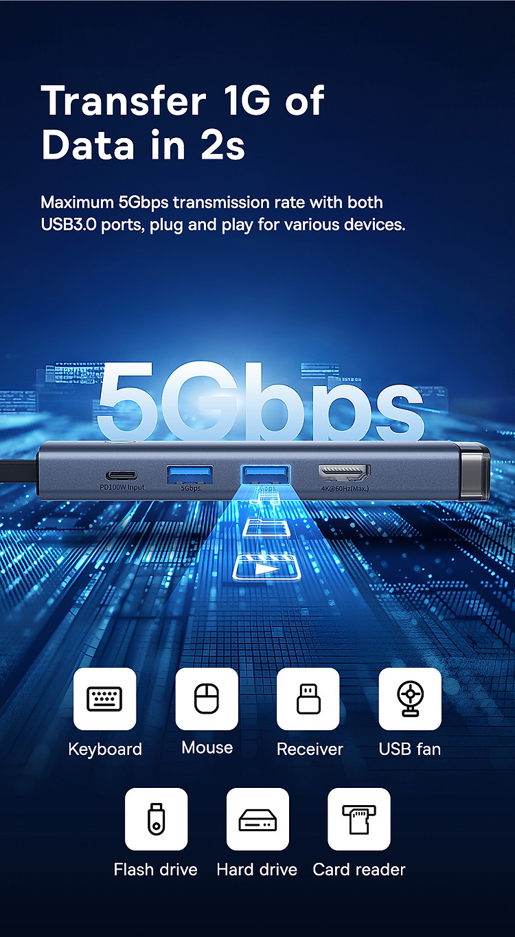 Kết Nối Đa Dạng: Với nhiều cổng kết nối khác nhau, bao gồm cổng USB, cổng HDMI, cổng Ethernet và cổng khác, Hub Mở Rộng này cho phép bạn kết nối nhiều thiết bị cùng một lúc, từ máy tính xách tay đến các thiết bị ngoại vi.