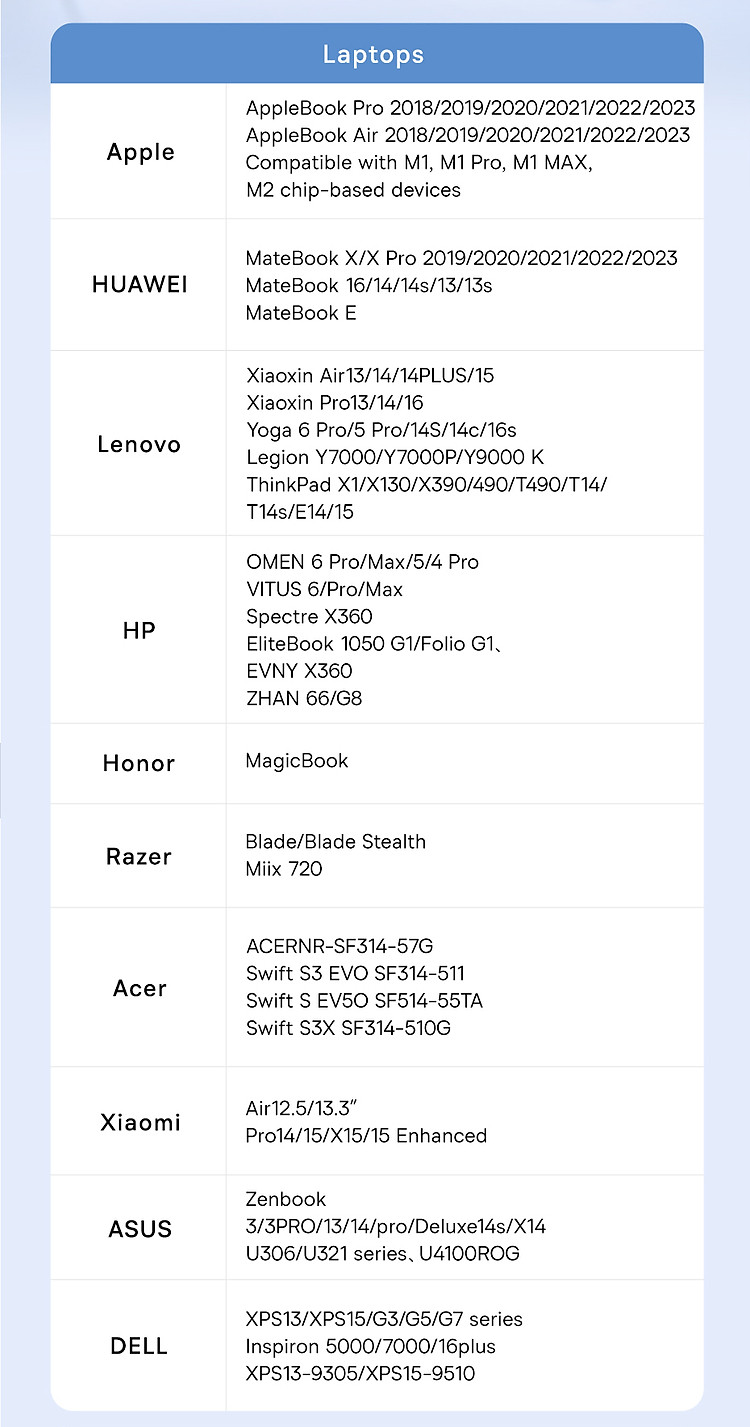 | Input | 5V-3A, 9V-3A, 15V-3A, 20V-5A |