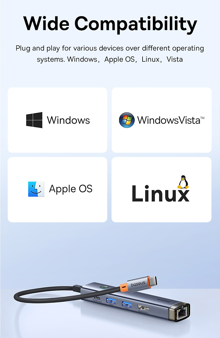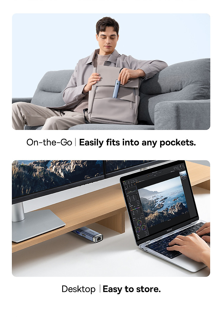 Thiết Kế Nhỏ Gọn và Nhẹ: Với thiết kế nhỏ gọn, Hub Mở Rộng này dễ dàng mang theo trong túi xách khi bạn di chuyển, làm cho nó trở thành một phụ kiện hữu ích cho người dùng di động.