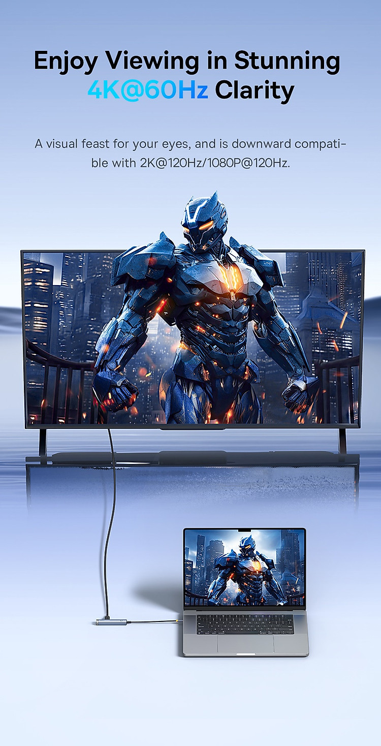 Kết Nối Màn Hình 4K: Cổng HDMI hỗ trợ độ phân giải 4K, giúp bạn trải nghiệm hình ảnh sắc nét và chất lượng cao khi kết nối máy tính xách tay với màn hình ngoại vi.