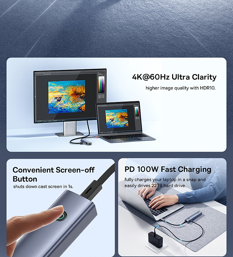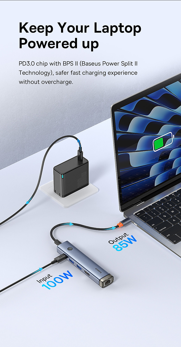 Với Hub Mở Rộng Kết Nối Baseus UltraJoy Series HUB AIR, bạn có thêm sự linh hoạt và thuận tiện trong việc kết nối các thiết bị, tạo ra một không gian làm việc hiệu quả và tiện ích.