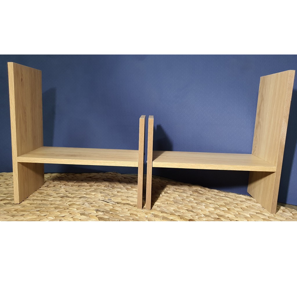 Kích thước kệ sách gỗ, kệ sách để bàn làm việc, kệ sách đầu giường, kệ sách lắp ghép đa năng: Dài 35 -52cm x sâu 20cm x cao 35cm