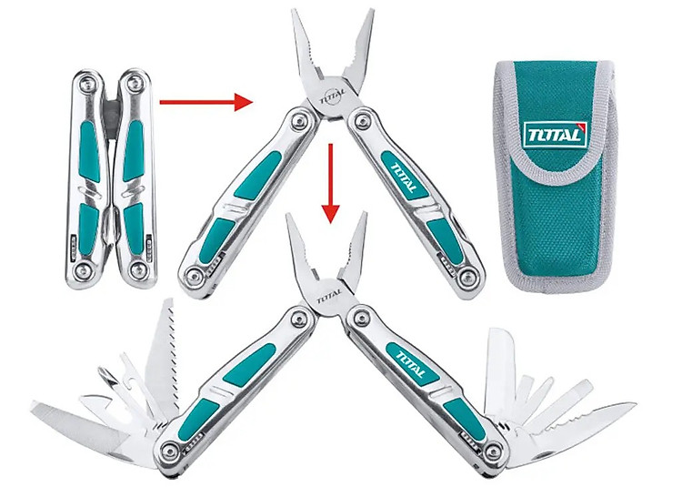 Bộ kềm dao gấp gọn đa năng 15 công dụng có túi đựng TOTAL TFMFT01151 có kèm túi đựng nhỏ gọn, dễ dàng mang theo bên mình ở bất cứ nơi nào.