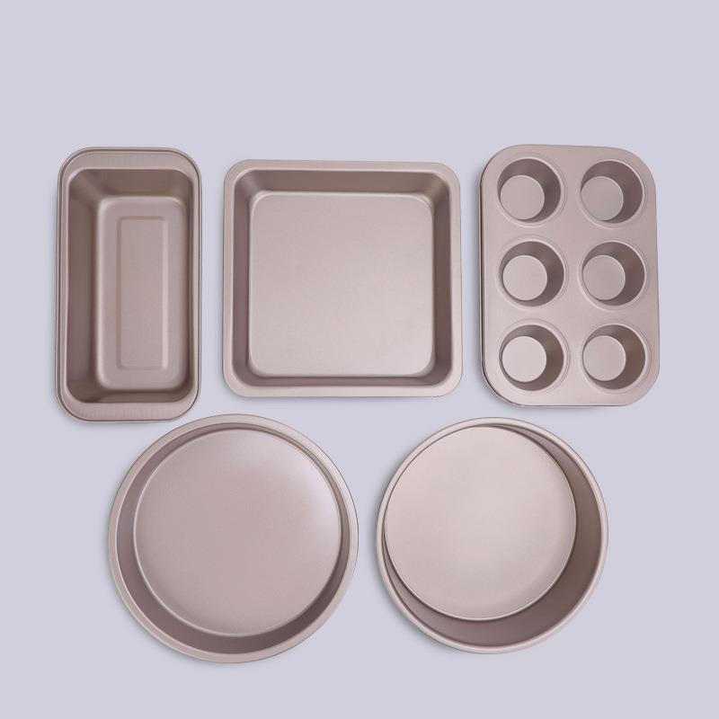 – Bộ sản phẩm gồm 5 chiếc khuôn, khay làm bánh với đầy đủ những kiểu dáng cơ bản nhất: