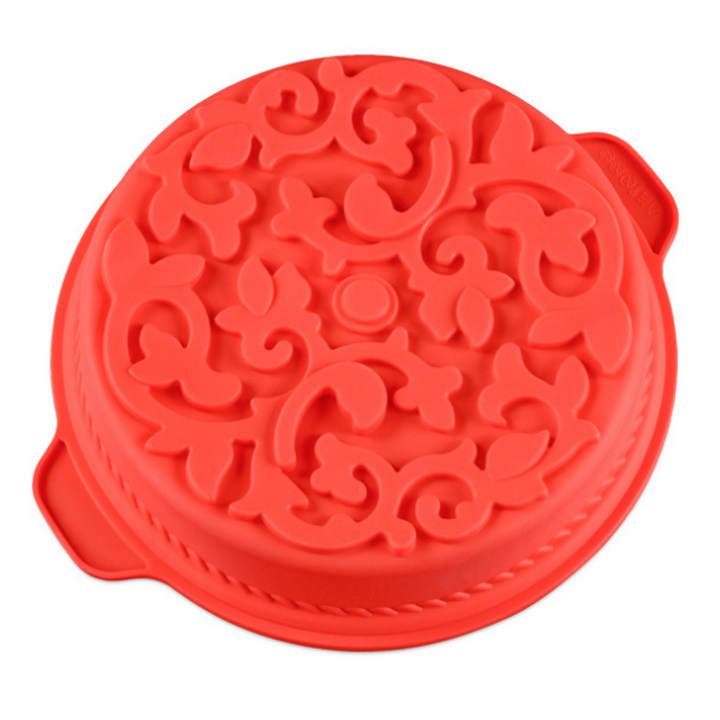 Khuôn silicon làm đế bánh, rau câu hình tròn hoa văn kiểu - Loại 28 cm – Mã số 1141