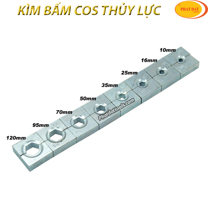 - Một tay bơm gắn liền và một đầu ép với nhiều kiểu hàm ép, thường là hàm ép chữ C hoặc vuông, lõi ép hình thành dạng lục giác.