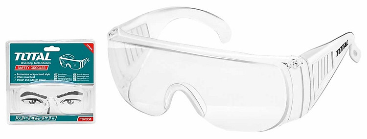 Kính bảo hộ lao động chống bụi và chống tia UV TOTAL TSP304 là sản phẩm chuyên dụng để bảo vệ mắt khi mài hoặc chà nhám gỗ, kim loại, đá, làm vườn