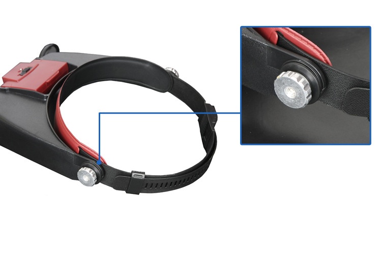 Sản phẩm còn có đèn led xung quanh để nhằm hỗ trợ cho quá trình làm việc bị thiếu ánh sáng. Và bạn cũng có thể điều chỉnh ánh sáng của đèn theo ý muốn của mình theo từng góc cạnh của đồ vật. Vì phía trên phần tiếp xúc giữa quai đeo và kính có các ốc vít nên sẽ rất dễ dàng khi bạn xoay chuyển đổi hướng.