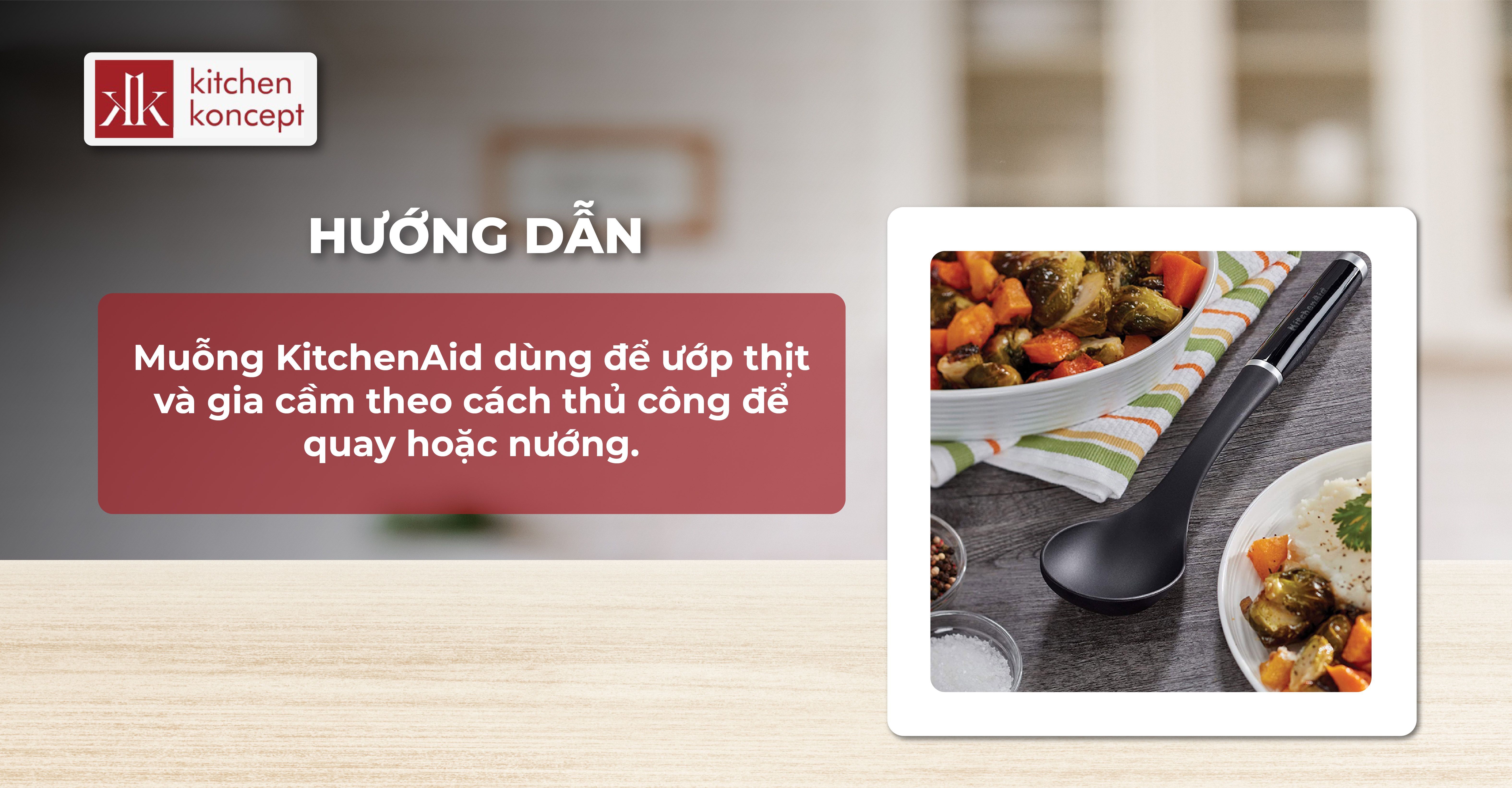 Muỗng cong màu đen KitchenAid hoàn hảo dùng để rưới sốt lên bề mặt thực phẩm, hoặc dùng để múc thức ăn. Sản phẩm chịu nhiệt lên đến 232°C.