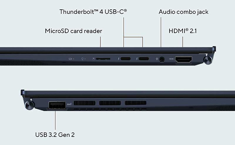 Các cổng kết nối được tích hợp là những cổng vô cùng hiện đại và có tốc độ cực nhanh. Điển hình là cổng ThunderBolt 4 USB-C vừa hỗ trợ sạc nhanh, vừa giúp kết nối tới màn hình 4K UHD tiện lợi và còn truyền dữ liệu siêu nhanh lên tới 40Gbps. Tiếp đó đến cổng HDMI, một cổng USB 3.2 Gen 2, một đầu cắm âm thanh kết hợp và một đầu đọc thẻ nhớ microSD.