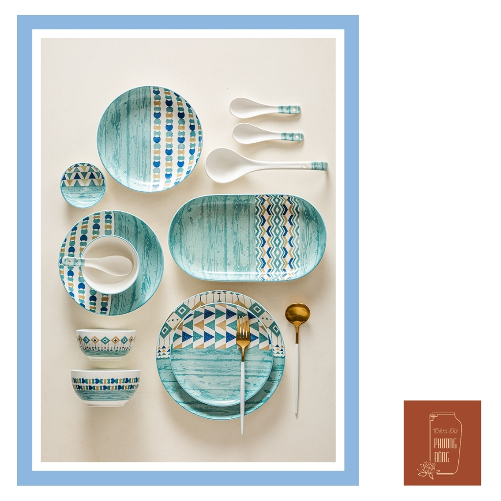 Bộ bát đĩa xanh đại dương phong cách Bắc Âu cao cấp bao gồm: