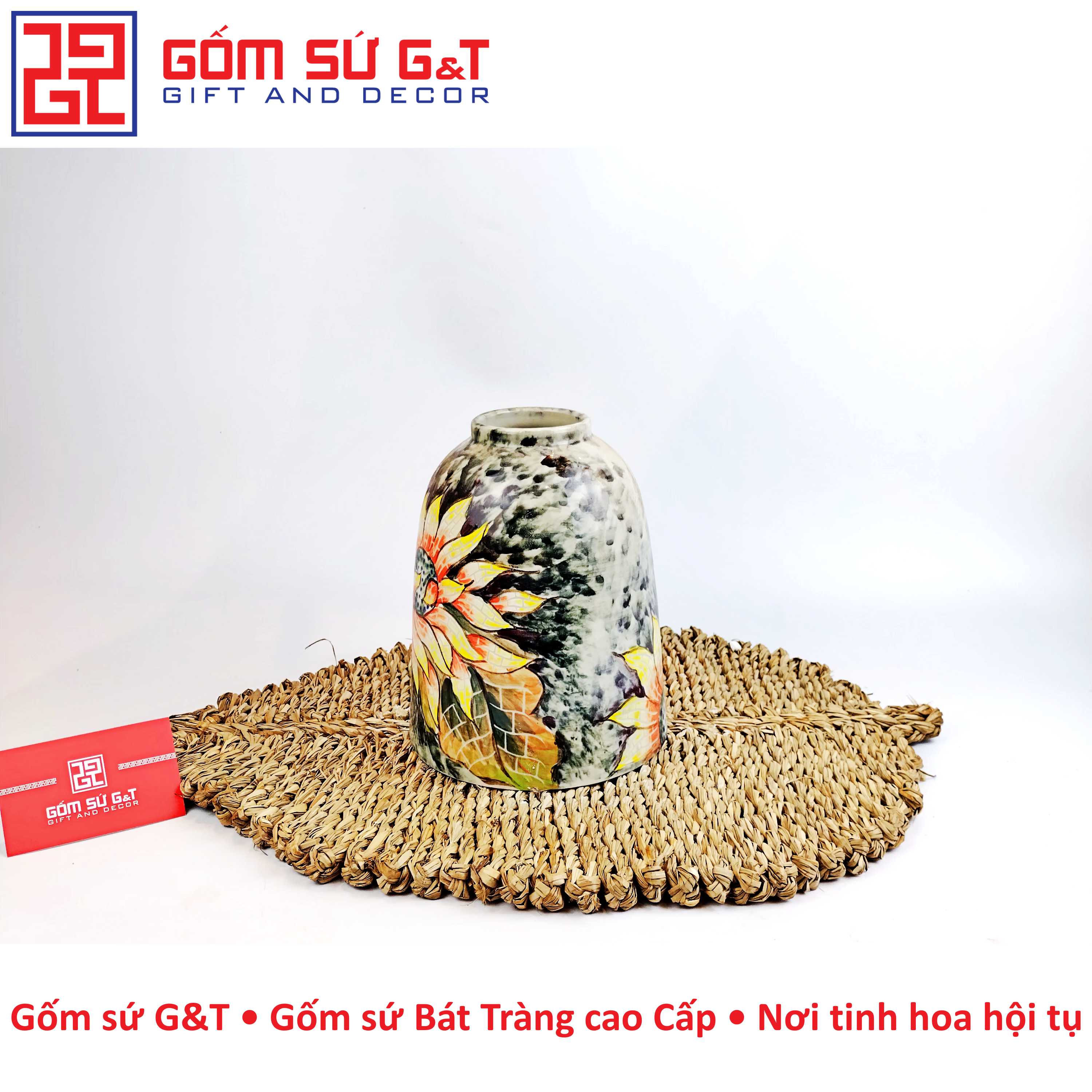 Những bức tranh tinh tế được vẽ tay trên bề mặt lọ hoa chuông hoa hướng dương không chỉ là hình vẽ đơn thuần mà còn là những câu chuyện được thể hiện qua từng nét vẽ. Nghệ nhân tài hoa thổi hồn vào từng chi tiết, tạo nên một thế giới màu sắc sống động trên sản phẩm gốm sứ. Sự tinh tế trong việc sắp xếp màu sắc và họa tiết vẽ tay giúp lọ hoa trở thành điểm nhấn tuyệt vời cho không gian trang trí.