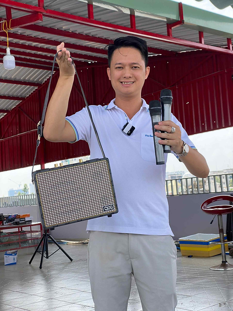 Dưới đây là bài viết giới thiệu về sản phẩm của . Đây là chiếc loa di động xách tay chuyên dụng được thiết kế dành riêng cho những ai yêu thích âm nhạc và hát karaoke mọi lúc mọi nơi. là sự kết hợp tuyệt vời giữa kiểu dáng sang trọng và di động, 2 micro karaoke không dây đi kèm, âm thanh vòm 360 và chất lượng bass uy lực mạnh mẽ.