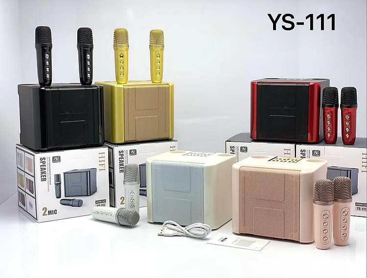 Loa karaoke YS-111 kèm 2 micro không dây chất lượng cao. Với thiết kế hoàn toàn mới lạ, nhỏ gọn, đẹp, có đèn led mặt trước. Kiểu dáng thiết kế hiện đại, sang trọng. Loa karaoke YS-111 là dòng loa có kích thước khá là nhỏ gọn, giúp cho việc di chuyển trở nên dễ dàng và thuận tiện. Loa YS-111 có 2 micro không dây hỗ trợ tốt cho các buổi hội thảo và trợ giảng trên lớp học.