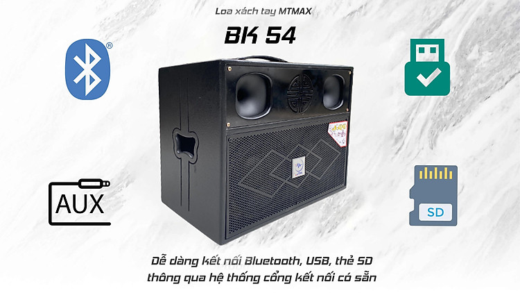 Loa kéo xác tay MTMAX BK54 sở hữu thiết kế hiện đại, thời trang, cuốn hút tất cả các khách hàng yêu thích sử dụng, kích thước nhỏ gọn 65cm x 60cm x 30cm., nặng 12kg nên dễ dàng mang đến tất cả các không gian giải trí.