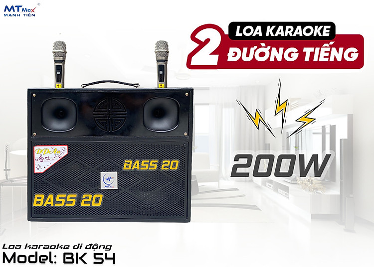 Loa kéo di động MTMAX BK54 Bass 20 kèm 2 Micro không dây kim loại .Chiếc loa BK54 với thiết kế mạnh mẽ vỏ gỗ bọc da tổng hợp, sang trọng, loa bass chắc, âm thanh hơn hẳn các loa ngang tầm giá.