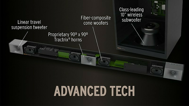 Sound bar Cinema 800 là hệ thống 3.1 thực sự, có loa trung tâm chuyên dụng để nâng cao độ rõ của giọng hát và loa tweeter có họng còi, giống như loa rạp chiếu phim chuyên nghiệp huyền thoại của Klipsch, cho sự mạnh mẽ và sống động trong từng chi tiết âm nhạc và phim của . Cinema 800 được chế tác từ chất liệu gỗ cao cấp, giống như những chiếc loa Klipsch huyền thoại.