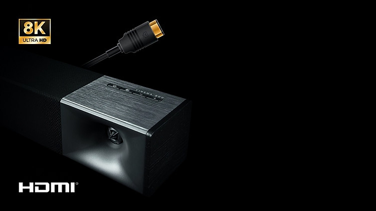 Cinema 800 có khả năng truyền video 8K với hỗ trợ HDR, vì vậy bạn có thể có được chất lượng hình ảnh và âm thanh phong phú với các kết nối HDMI đơn giản - một từ nguồn video 4K hoặc 8K tới sound bar và sau đó là một từ sound bar đến TV của bạn. Nó cũng hỗ trợ eARC (Kênh trả về âm thanh nâng cao), vì vậy nó có thể nhận tín hiệu âm thanh không bị hạn chế - như Dolby Atmos - từ TV được trang bị eARC.