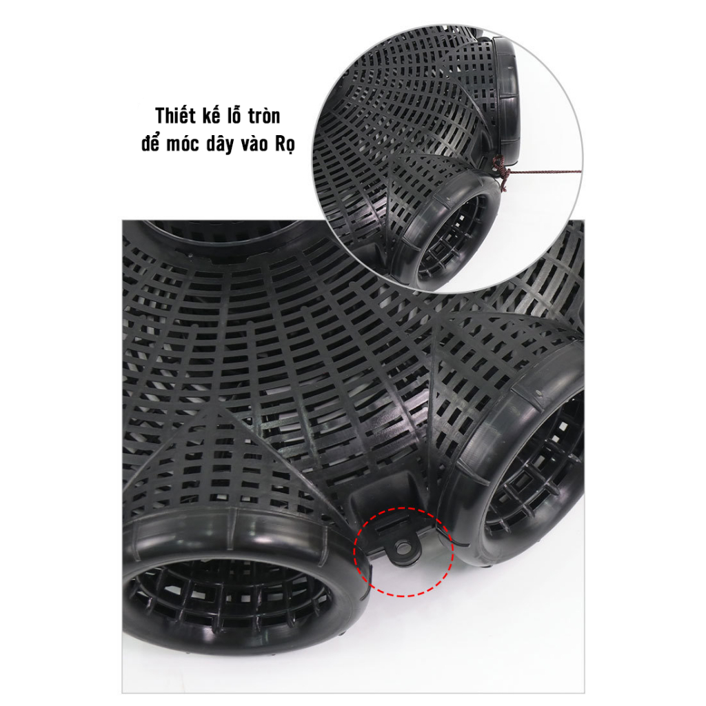 + Chất liệu nhựa PP dày của bẫy câu cá này giúp lỗ lưới hình con thoi mở và làm sâu thêm chiều sâu của lối vào .
