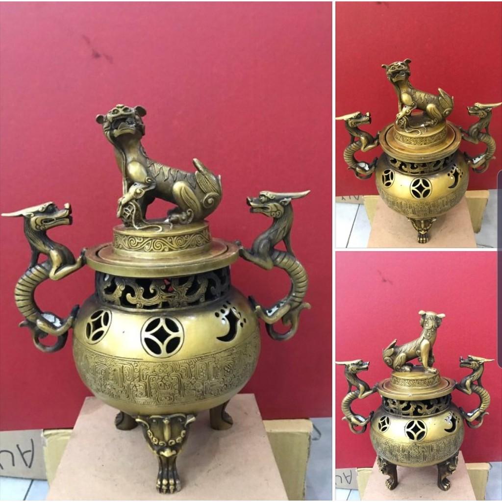 Tên sản phẩm: Lư xông trầm lắp nghê tai rồng bằng đồng MS104