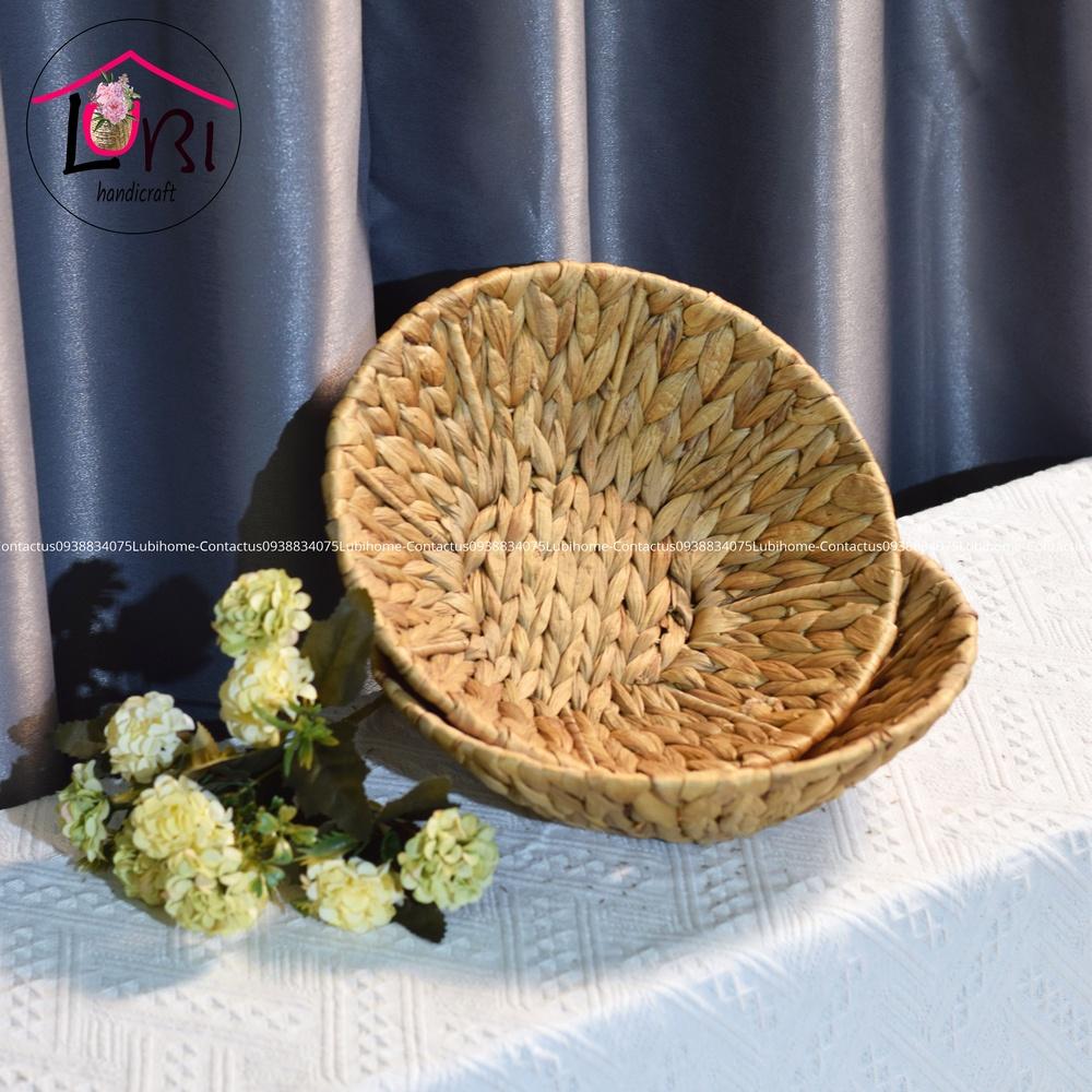 - Khay đựng đồ đan lục bình hình tròn côn đáy