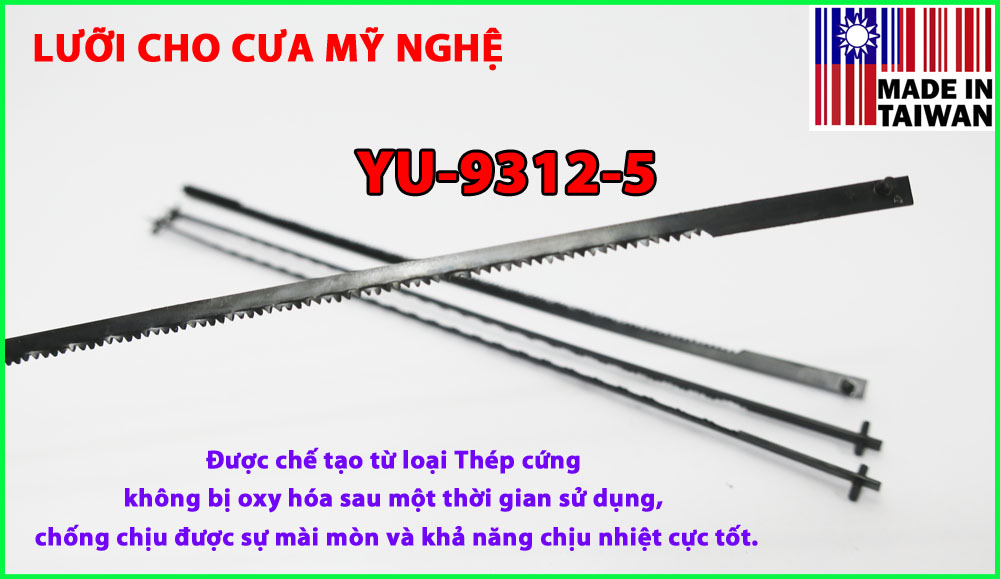- Lưỡi cưa mỹ nghệ YU-9312-5 là sản phẩm mang đến cho bạn những đường cưa chính xác, vì được thiết kế nhỏ gọn bằng chất liệu cao cấp và gia công đặc biệt, với khả năng hoạt động mạnh mẽ, mang lại sự hài lòng cho người sử dụng.