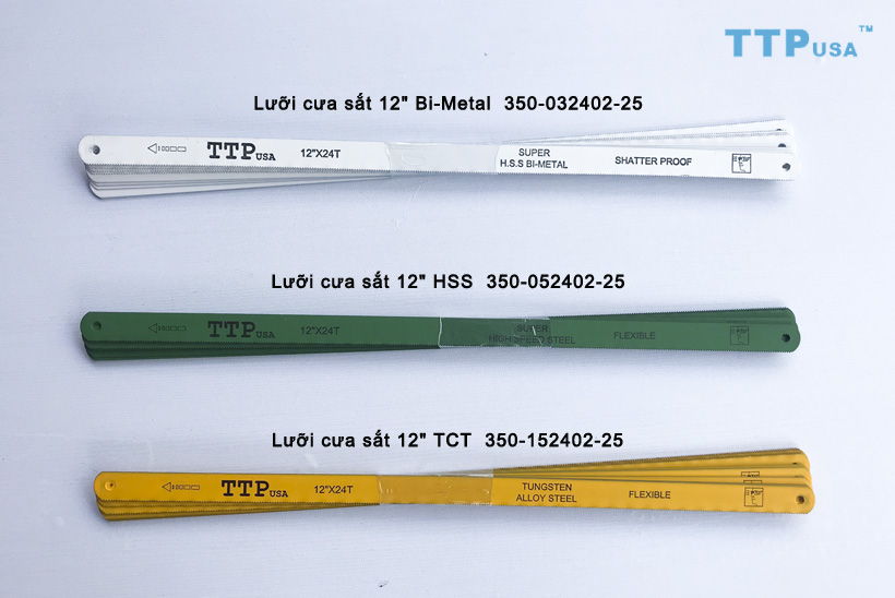 - Lưỡi cưa sắt 12" TTPusa là phụ kiện không thể thiếu cho các khung cưa sắt cầm tay có kích thước 12" (305mm). Lưỡi có 3 loại giúp bạn cưa được những chất liệu cứng đầu như Bi-Metal, hợp kim HSS, Hợp kim TCT, và thép Ca-bon .