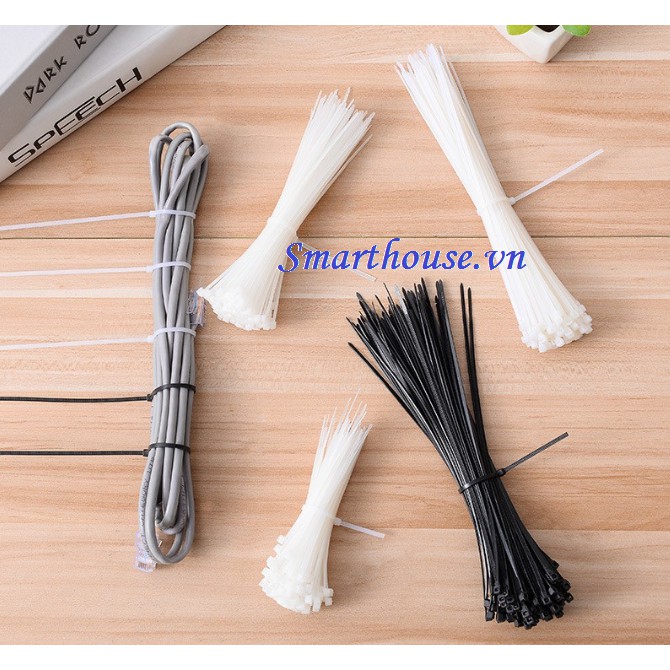 * Set 100 dây thít bằng nylon đầu khóa zip nhanh màu trắng/đen tiện dụng