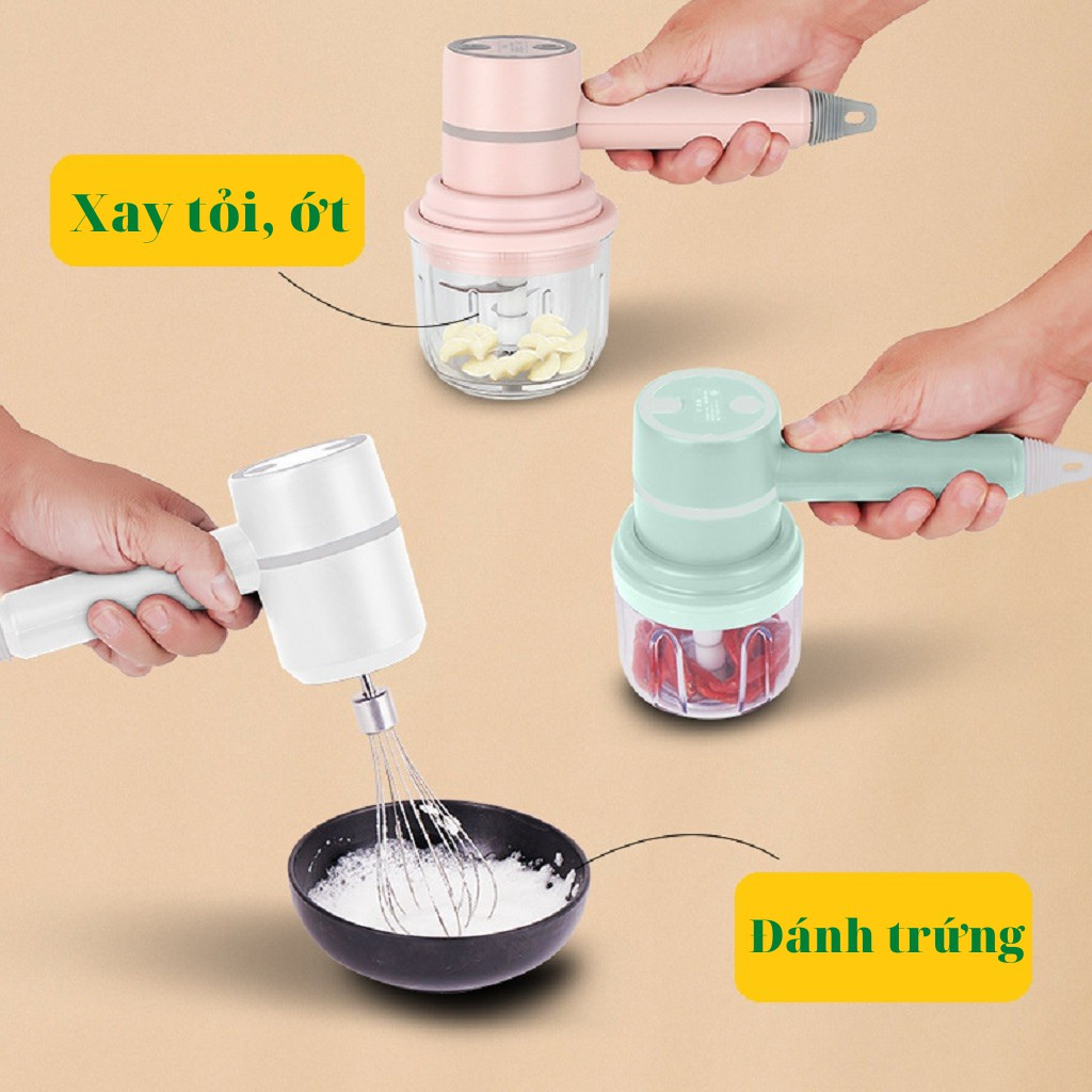 Máy Xay Tỏi 3in1 Kèm Đầu Đánh Trứng Sạc USB Tiện Lợi