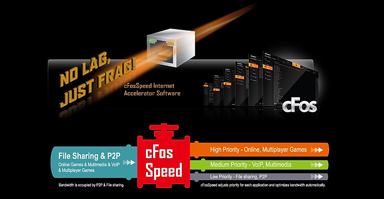Intel GbE LAN có tính năng cFosSpeed, một ứng dụng quản lý lưu lượng mạng giúp cải thiện độ trễ mạng và duy trì thời gian ping thấp để mang lại khả năng phản hồi tốt hơn trong môi trường mạng LAN đông đúc.