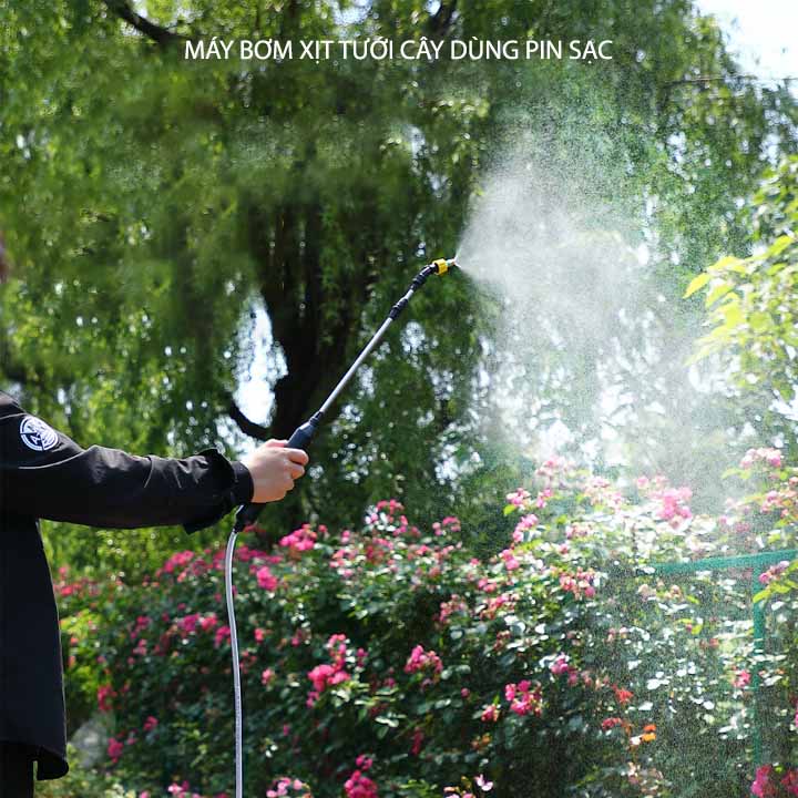 Máy bơm xịt tưới cây cầm tay dùng pin sạc, đầu dài có nhiều chế độ phun kèm ống mềm cấp nước dài 3.0m