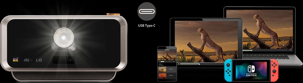 Máy chiếu 4K ViewSonic X11-4KP cho phép bạn trình chiếu nội dung trực tiếp từ điện thoại hoặc các thiết bị di động khác qua cổng USB Type-C, đồng thời vẫn đang sạc thiết bị. Bạn có thể truyền phát video, chơi game,... trên màn hình lớn chỉ bằng một dây cáp, không cần đế cắm.