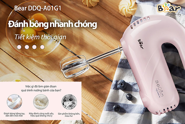 Nếu bạn đang tìm một chiếc máy đánh trứng cầm tay mini nhỏ gọn thì không thể bỏ qua phiên bản mới của Bear DDQ-A01G1 nhé.