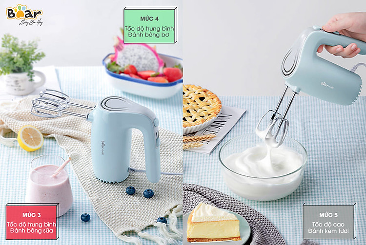 Với thiết kế thông minh và bảng chức năng, tốc độ rõ ràng máy đánh trứng Bear vô cùng dễ sử dụng. Cách dùng đơn giản như sau:
