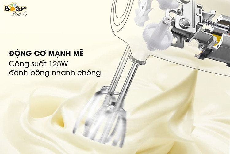 Mặc dù là dòng máy đánh trứng mini cầm tay nhưng Bear DDQ-B02P5 vẫn được trang bị động cơ hiện đại với công suất 125W mạnh mẽ. Nhờ đó tốc độ đánh rất nhanh và mạnh, chỉ sau khoảng 2 - 5 phút đánh đã giúp đánh bông đạt kết cấu ổn định.