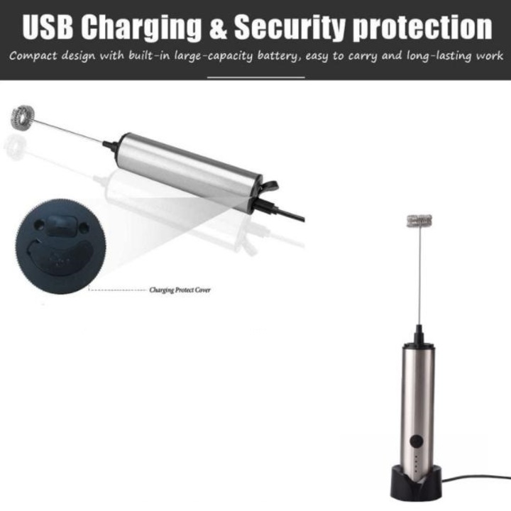 - Máy tạo bọt sữa cầm tay đa năng sử dụng điện sạc USB, tích hợp hai phương thức sạc, sạc dưới đế máy hoặc sạc theo đế sạc