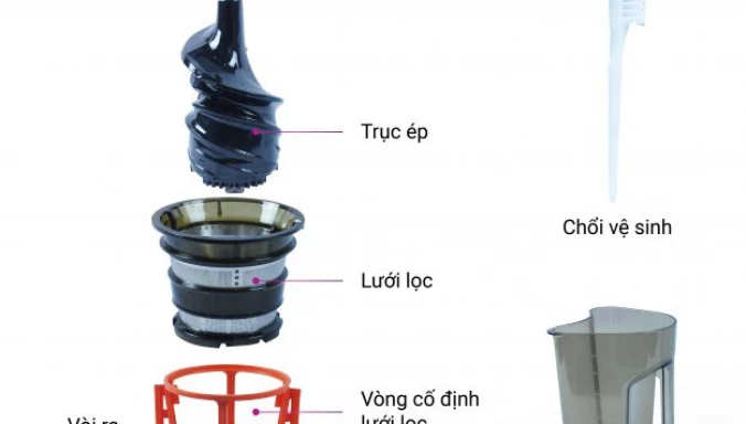 Công suất động cơ ép 200W, tốc độ ép chậm 45-60 vòng/phút giúp ép kiệt bã đến 99%, vẹn nguyên dinh dưỡng, tăng 30% lượng nước ép.