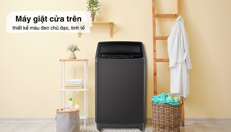 – Máy được thiết kế theo kiểu cửa trên – lồng đứng với màu sắc chủ đạo là màu đen tinh tế, dễ ứng dụng vào không gian nội thất căn hộ hoặc nhà phố.